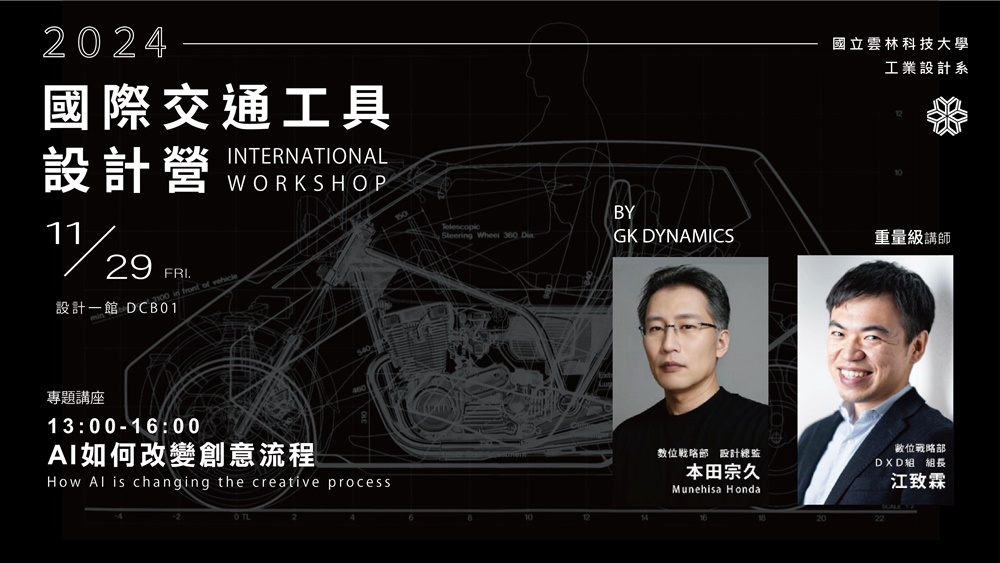 今年活動再次與重量級業師合作—GK Dynamics 數位戰略部設計總監 本田宗久 (Munehisa Honda) 與 DXD 組長 江致霖 (Chihlin Chiang),共同擔任「2024國際交通工具設計營」的指導業師。
