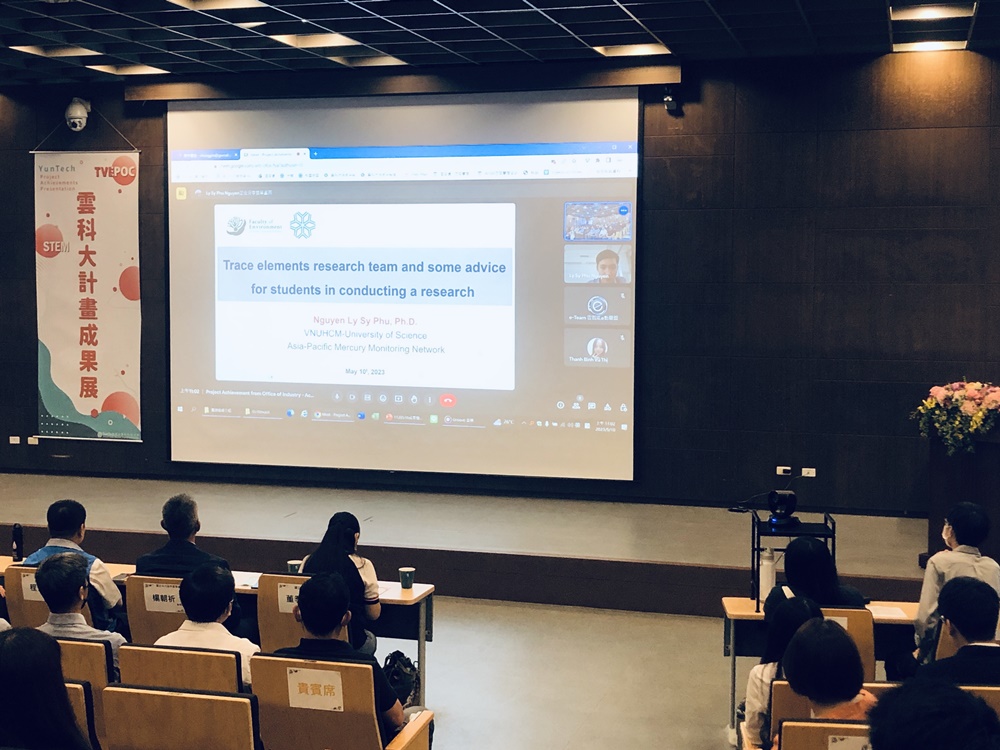 (中央社訊息服務20230510 14:39:45)雲科大5月10日舉行「教育部產業安全和環境永續之跨領域智慧化人才培育計畫」及「國科會臺越環境保護海外科研中心維運計畫」計畫成果發表會,包含許多合作產業界代表及高中夥伴都一同參與。成果展特別邀請越南胡志明市國家大學-理科大學(VNUHCM-US)阮立錫福老師現場連線,分享他的研究學習歷程以及和台灣的淵源,並感謝計畫促成與臺灣師生進行國際交流的機會。