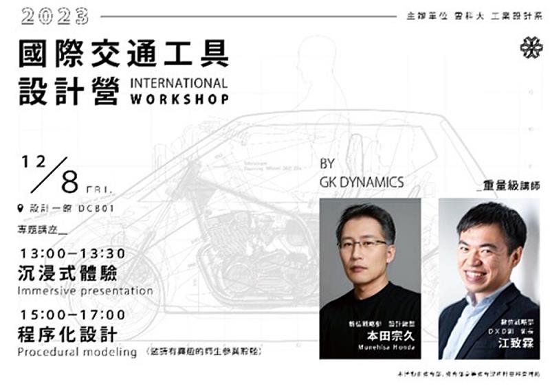 雲科大工設系邀請日本GK設計集團的GK Dynamics共同舉辦「2023國際交通工具設計營」,主題聚焦在未來無人駕駛移動載具的內裝設計,期在國際業師引導下,能帶領學生激發出更多創新思維。本次活動更特別邀請到日本GK Dynamics數位戰略部本田宗久(Munehisa Honda)設計總監及江致霖(Chihlin Chiang) DXD組長擔任業師。為提高參與學生學習效果,設計營活動採混成式互動教學,並分二階段進行:第一階段以遠距線上互動方式進行,自112年11月10日起,同學可以直接用自己專屬角色登入元宇宙教室,跟著GK Dynamics業師一起在虛擬實境教學空間中進行學習;第二階段將於12月8日舉行,兩位國際業師將親赴本校帶領學生執行實體成果發表,及舉辦專題講座與實作工作坊,並分享國際設計新知與設計技法予全校師生。活動相關訊息將持續發佈於雲科工設系網。