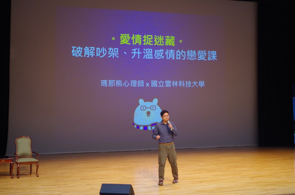 (中央社訊息服務20231206 14:15:47)有相當多的同學是進入大學校園裡才開始談戀愛,因此,如何談感情、經營優質的戀愛,就是一個非常重要的課題了。國立雲林科技大學於12月6日(星期三)全校四年級學生週會,特聘網路聲量前20大「人氣心理師」瑪那熊(陳家維)以《破解吵架、升溫感情的戀愛課》為題進行一場愛情學分班特訓班,讓同學知道與心儀對象共譜戀曲應如何持續經營維持。該校學務處廖靜婕組長親自到場主持,該場演講吸引了雲科大師生近800人到場聆聽。