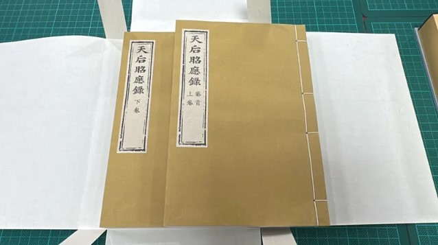 其中「天后昭應錄」是第一批完成修復的古籍,今天首度開箱亮相,原本破損不堪的書冊,已成完整的典籍,令人驚艷,廟方說,昭應錄發行於清乾隆32年(西元1767年),距今已258年。分卷首序文及上、下卷,上卷「本朝祀典」、「歷代祀典」、「歷代誥文」。下卷為「天妃本傳」,講述媽祖自宋代到清代的發跡、顯靈、救苦救難故事,目前全球約僅剩3本,分別收藏於朝天宮、福建廈門圖書館、美國紐約圖書館等處。