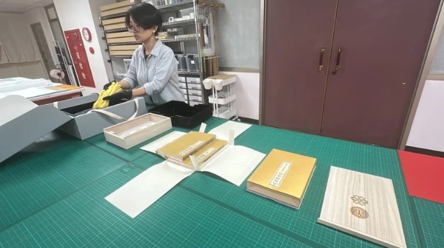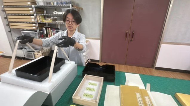修復後永久保存則是一大挑戰,除以高規格的無酸瓦楞紙盒、棉質藍色及絲質黃蘗包袱巾、孔雀牡丹蒔繪漆盒、梧桐木盒、泥金箋函套、楮皮紙4折翼等7層護具包護,再結合古人護帙智慧並以溫濕控制防潮箱收存,等同於國家級博物館保存規格,可保世代相傳。
