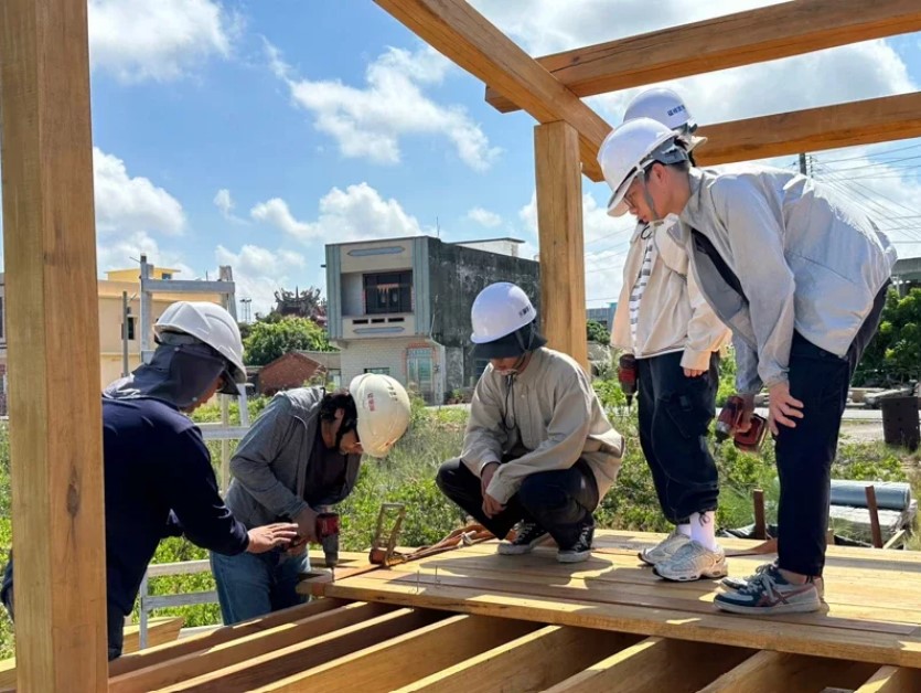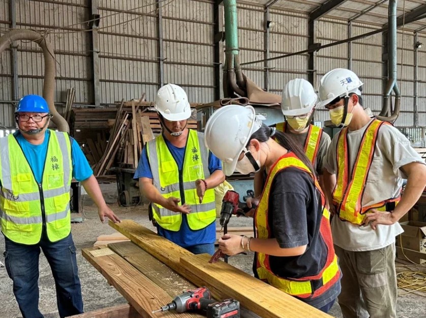 雲林科技大學建築系學生參與國產材木料加工。記者蔡維斌/翻攝