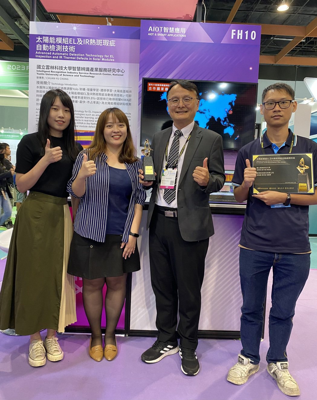 國立雲林科技大學智慧辨識產業服務研究中心(IRIS)主任張傳育博士領軍,研發「太陽能模組EL及IR熱斑瑕疵自動檢測技術」,以獨創的可適應調整的Yolo架構為基礎,引入增量學習、遷移學習等技術,克服瑕疵類型多元、資料蒐集不易的問題,大幅提升瑕疵辨識準確度,可即時精準檢測出數十種缺陷,準確率可達到99.8%,在全球頂尖團隊激烈競逐脫穎而出,對臺灣未來發展具貢獻潛力,奪得「2023未來科技獎」。