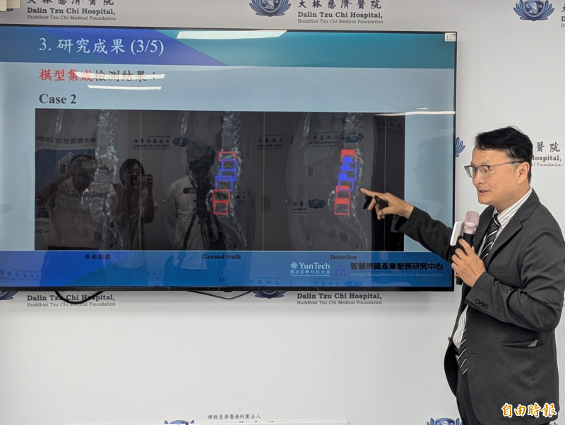 雲科大透過蒐集大林慈濟醫院脊椎CT影像,訓練AI判讀,建立CT影像AI判讀系統模組。(記者王善嬿攝)