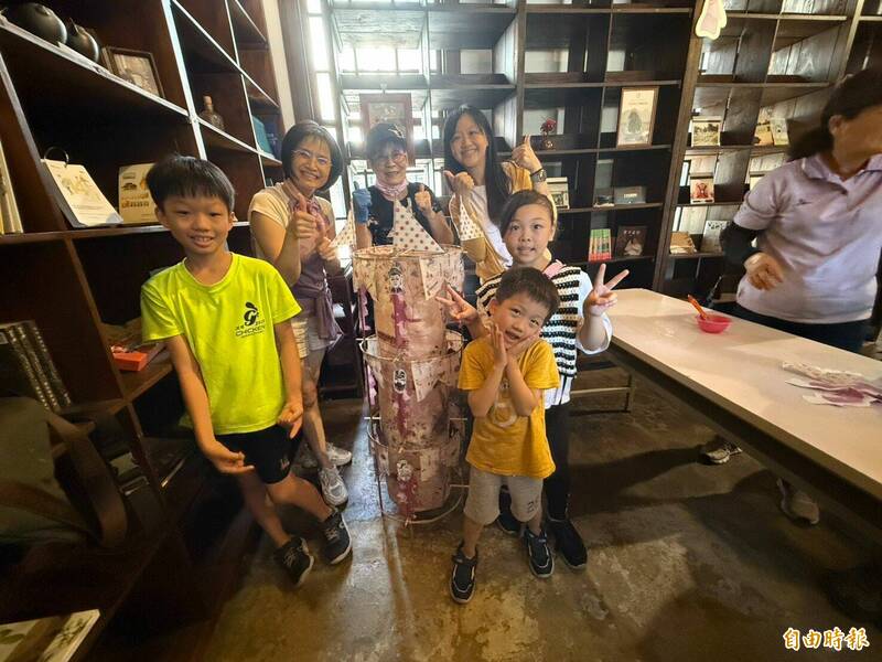 蚶寮萬善祠與台灣公益CEO協會共辦糊水狀活動,吸引50名親子一同製作。(記者李文德攝)