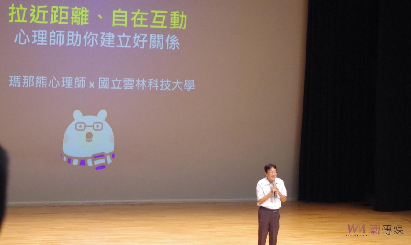 ▲人氣心理師瑪那熊(本名陳家維)於雲林科技大學週會中進行「單身者如何用合宜方式脫單」講座。(圖/記者蘇榮泉攝)
