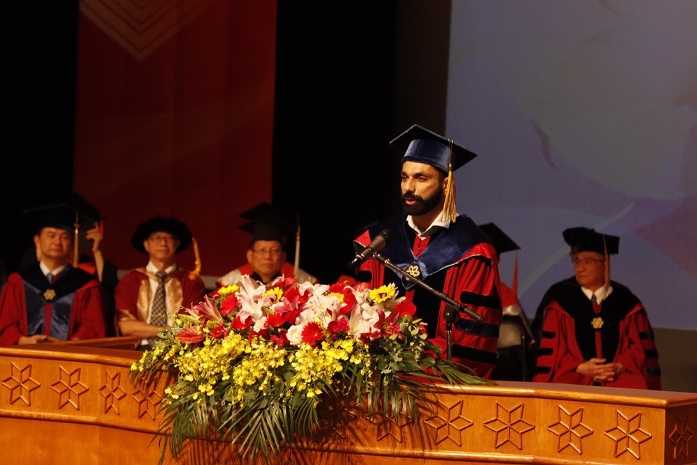 典禮中分別安排本地生及外籍生進行致詞,上午場由電子工程系梁晴雯及巴基斯坦籍國際學生工程科技研究所博士班的Muhammad Faizan Malik同學等二位同學致感謝詞;下午場由會計系陳玟諠同學及馬來西亞籍國際學生視覺傳達設計系黃鈺茗同學等二位同學代表學生致詞,全體畢業生在致詞代表生動及充滿感謝的致答詞中,讓在場同學回顧及重溫四年學校的生活點滴,全場的師生亦給予熱烈掌聲鼓勵。