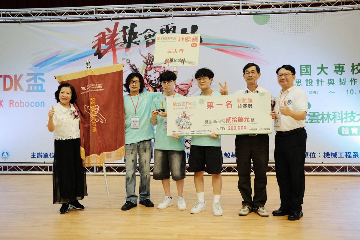 由教育部指導、TDK文教基金會贊助、國立雲林科技大學主辦的第29屆「TDK盃全國大專校院創思設計與製作競賽」於10月2日至4日在雲科大體育館舉行,歷經三天激烈比賽,最終由明新科技大學「三人行」奪得自動組第一名,「大調查部隊」則拿下遙控組冠軍。兩支冠軍隊伍除獲獎金外,也將獲得補助前往日本參觀NHK Robocon機器人大賽,拓展國際視野。