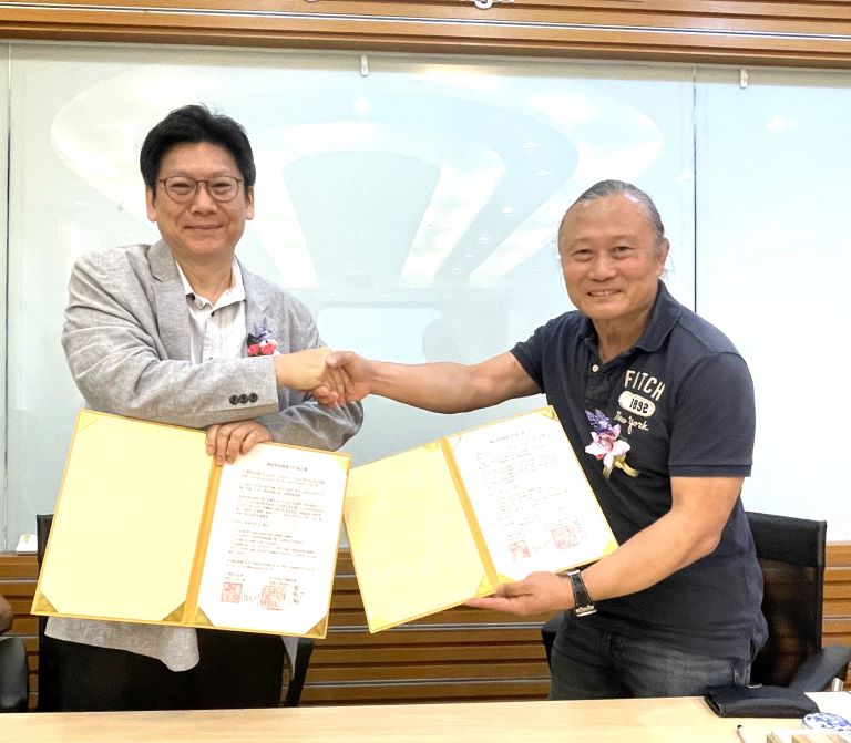 ▲台灣陶瓷協會游元隆理事長(左)與新加坡南洋陶藝協會陳德興理事長締交儀式。【照片:記者張立明編輯】