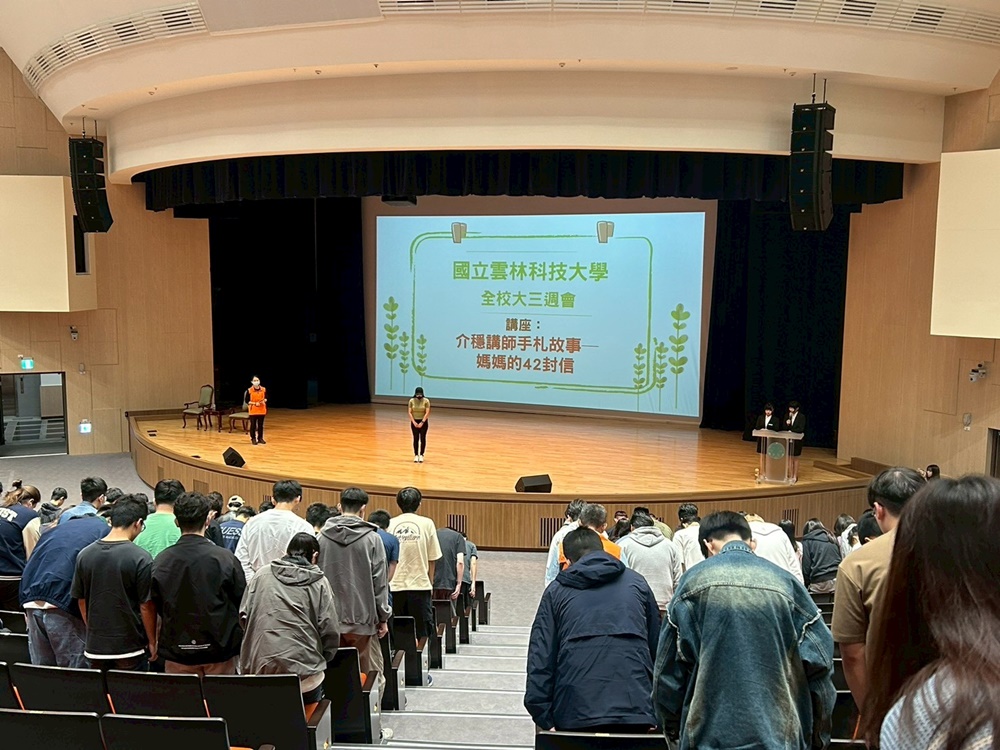 (中央社訊息服務20250409 14:07:28)國立雲林科技大學於4月9日(三)上午邀請台南市政府毒品危害防制中心程瑤甄介穩講師,蒞校爲三年級學生週會專題演講,演講主題:「媽媽的42封信」,程講師分享親身經歷,深刻描繪了原生家庭可能帶來的負面影響,以及如何誤入歧途,最終在親情的呼喚下重返正途的感人歷程,這份觸動人心的悸動故事,提醒所有學生,正視青少年成長過程中複雜的內心世界與家庭互動模式,強調家庭支持在迷途青少年回歸社會中的關鍵作用。
