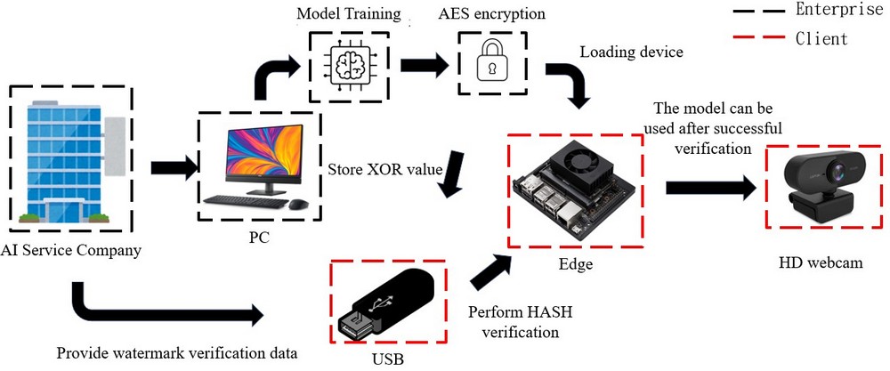 (中央社訊息服務20250512 10:26:12)電子工程系王斯弘助理教授團隊之創新研發技術「應用於邊緣運算平台AI模型的加密保護機制」,Edge-AI 加密保護機制,透過 USB、金鑰與 CPU 序列號綁定技術,確保 AI 模型僅能在授權設備上執行,防止未授權存取與模型盜用。系統架構包括 CPU 與 USB 雙重驗證、AES 加解密、雜湊驗證與浮水印技術,確保模型未遭篡改或攻擊。當解密 USB 插入後,系統檢查 HASH 值、XOR 值,並使用 CPU 序列號生成金鑰進行 AES 解密,將模型載入內存並驗證模型雜湊值。接著,浮水印技術比對模型內部數據,檢測是否有篡改。當 USB 拔除或裝置閒置時,系統會自動刪除明文模型。該師團隊另一創新研發技術「空拍機結合AIoT技術應用於杜絕登革熱傳播」,根據世界衛生組織(WHO)統計,登革熱在全球範圍內的感染人數逐年增加,結合無人機技術與AI影像辨識技術,針對登革熱病媒蚊孳生地進行智能監測與處理,旨在提升病媒蚊防治的效率與準確性。系統主要功能包含空拍巡檢、積水容器辨識、孑孓檢測與智能消毒,透過高效影像分析技術,即時掌握高風險區域,並透過精準噴灑機制進行病媒蚊孳生源消滅,不僅能有效降低登革熱傳播風險,還能減少人力資源的投入,提升整體防疫效率,兩作品皆勇奪金獎。