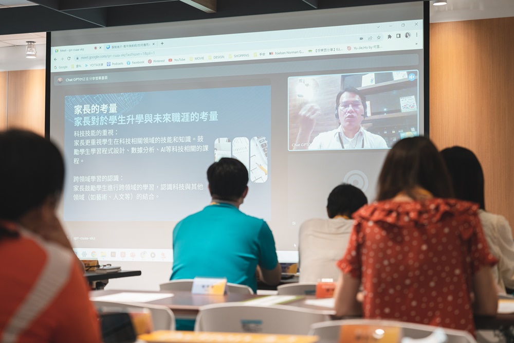 活動安排雲科大的李傳房教學長分享人智慧工具在選才上的挑戰以及老師如何有效檢視學習歷程檔案;同時由雲科大工程系蔡韋德教授分享生成式AI的教育創造新應用,如何讓AI成為輔助教學的工具;亦招請台北市永春高中的曾慶良老師,為大家分享如何應用AI在教學、學習歷程的準備與輔助指導。現場除掉了講座活動安排外,也安排了線上QA,而講座分享後的QA甚為激烈,有很多問題相當切身,與會老師表示對AI衝擊教學題目感受良深。