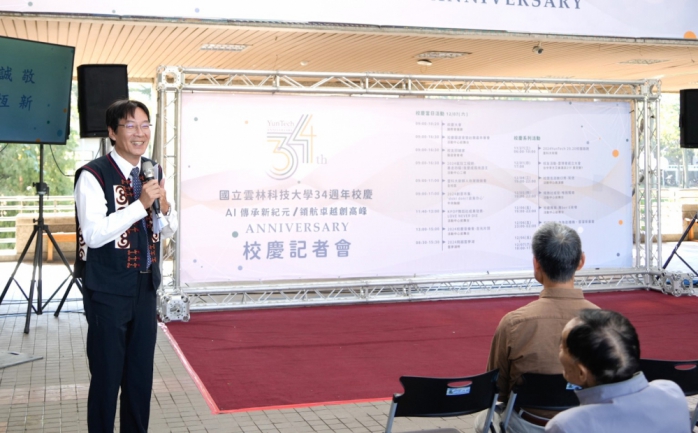 雲科大今天(2日)舉行校慶活動宣傳記者會,今年以「AI傳承新紀元,領航卓越創高峰」為校慶主題,呈現全校師生在楊能舒校長帶領下,以創新教學與產業對接為特色的國際知名大學,邁向更卓越挑戰,並期許雲科大成為一所創新的頂尖科技大學。