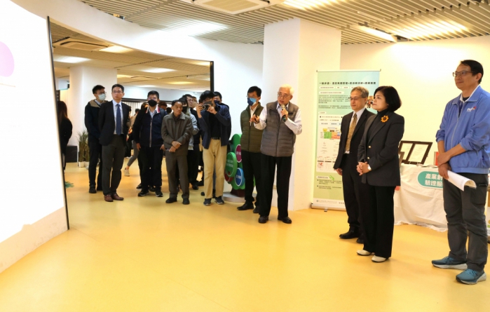 李處長說,本次活動成果分為多個展示內涵,包括「一驗多證區」展示雲科大運用AI統合ISO14064-1、ISO14067及TAP產銷履歷等多項查證,減少產業申請過程中重複消耗的成本。