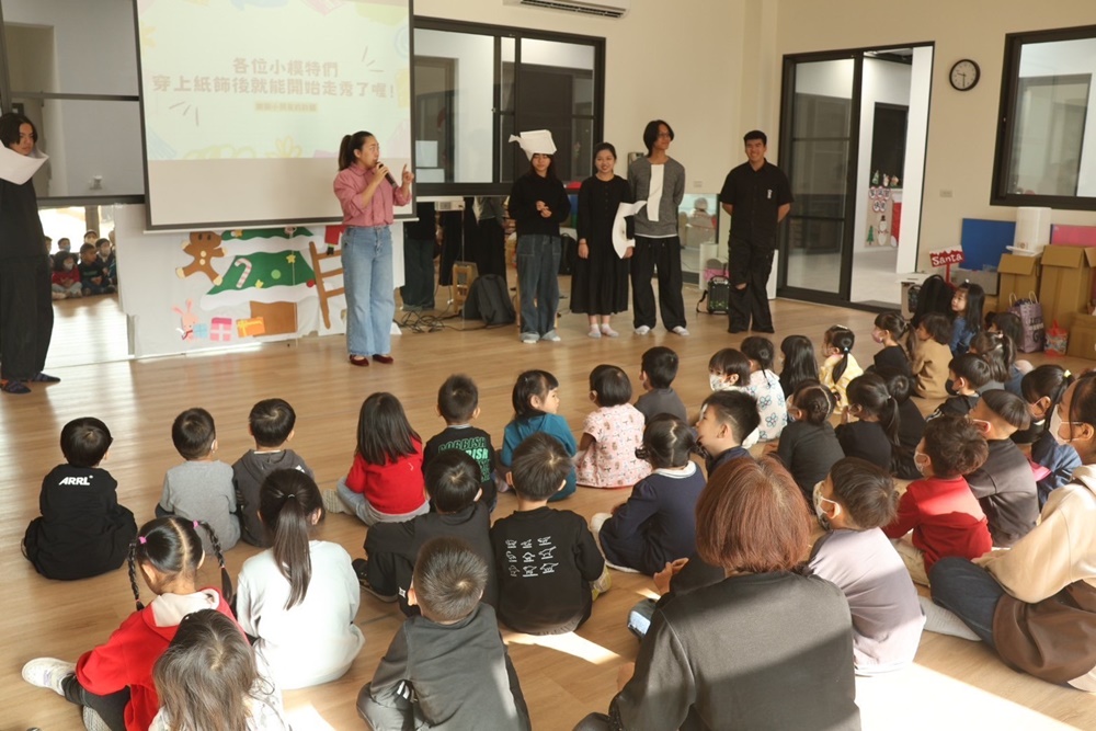 工設系指出,同學們展現出色的手工技藝與設計巧思,讓每件作品不僅美觀且耐用,適合小朋友安全穿戴在活動中,幼兒們穿上這些設計作品,活潑可愛,現場充滿歡聲笑語。