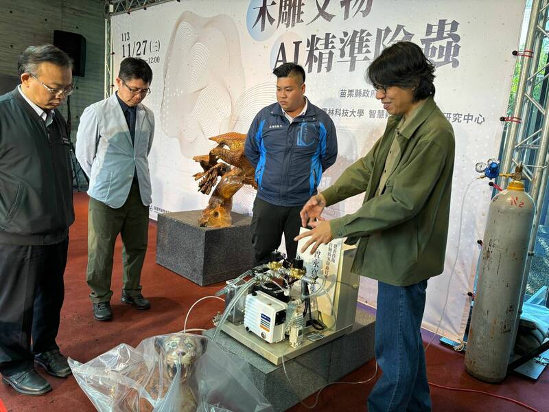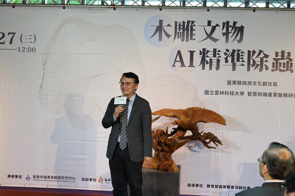 文觀局27日在三義木雕博物館,與雲科大3名教授共同發布AI精準除蟲技術,為文化資產保護提供了前所未有的精密守護,也為未來文物管理開創了新方向,使三義木雕博物館成為全台的優良示範點,未來,三義木雕博物館將繼續深化技術應用,並期待能將該模式推廣到更多的展館,以提升文物保護水平,讓更多藝術珍品在世代中傳承不息。