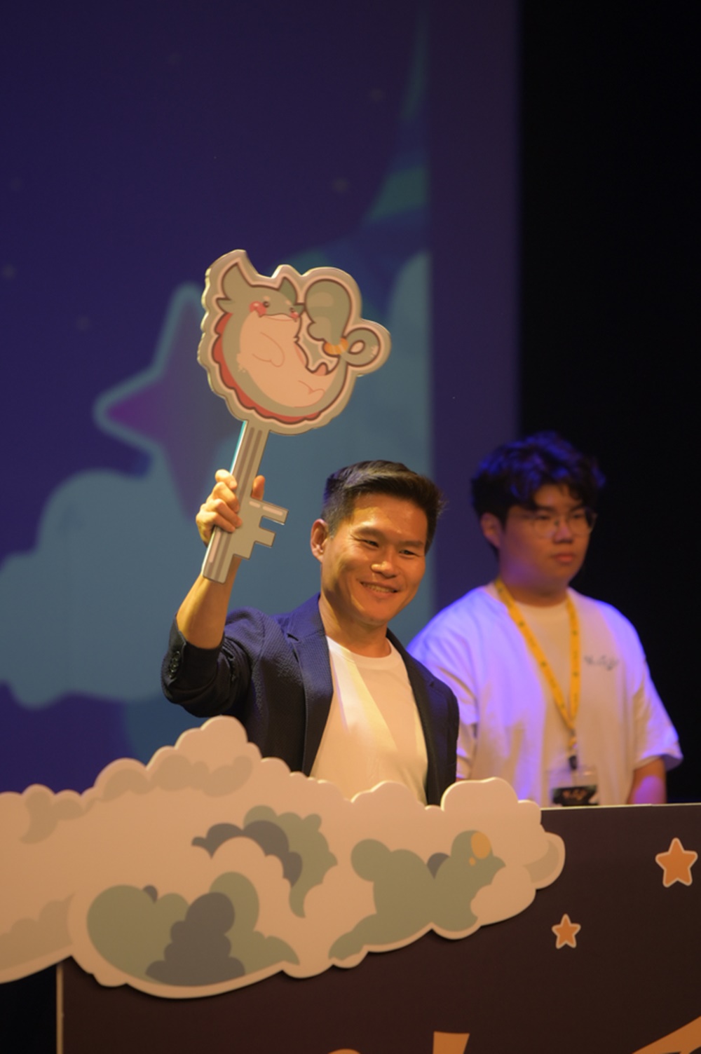 YunTecher集合囉!雲科大新生營開啟大學第一課-工程學院林啟文副院長高舉院吉祥物之鑰