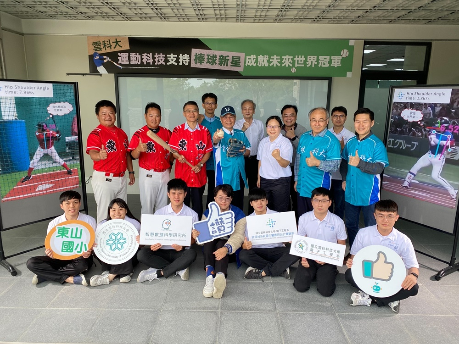 彰化縣員林市東山國小王建凱校長為雲科大技職所畢業校友,薛所長於年初帶領團隊實際至該國小瞭解少棒隊訓練資源,並捐贈初版的棒球打擊姿態分析系統給該校使用。王校長表示,東山國小是彰化縣唯一的棒球項目體育班,致力於培育基礎棒球選手,本次世界棒球12強賽中也有一位投手是該校校友。該校學務主任兼教練郭長鑫和專任運動教練柯良宗表示,少棒選手一直努力學習和訓練,在雲科大棒球運動科技的支持下,教練和選手能直觀地看到動作狀態並進行調整。選手的正確姿勢養成,是培育未來世界冠軍棒球選手的基礎,因此這個階段非常重要。