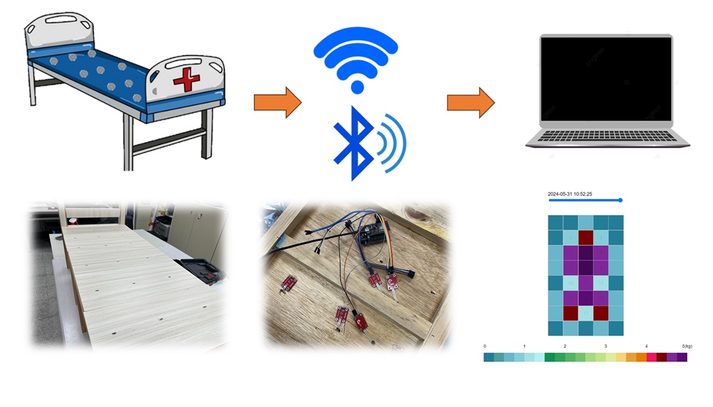 產業科技學士學位學程潘志龍助理教授團隊,分析現有產品,針對造價高、隱私侵犯等缺點,設計簡便且便宜的感溫及感壓床墊,配合AIoT遠端照護系統,降低獨居老人孤獨死風險。該系統透過床墊感知的壓力及溫度數據,透過合理偵測邏輯,達到孤獨死預警效果,勇奪金牌。
