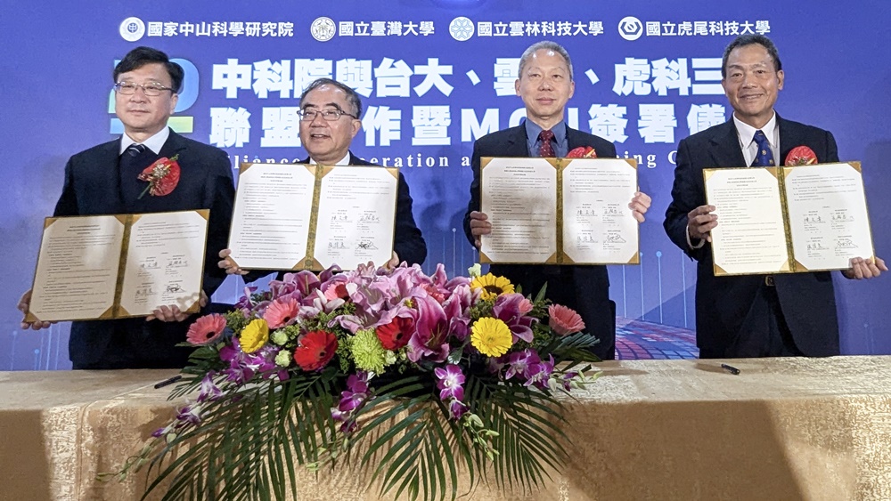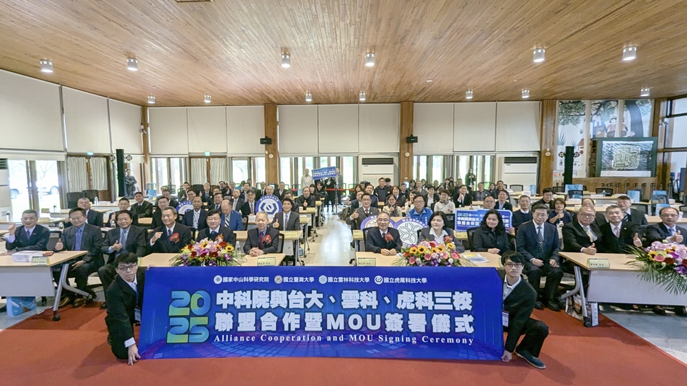 為促進國防科技創新研發及高階人才培育,國家中山科學研究院(以下簡稱中科院)3月19日,在國立臺灣大學雲林分部鋤禾館舉行「交流合作備忘錄」簽署儀式。此次合作由中科院發起,與國立臺灣大學、國立雲林科技大學、國立虎尾科技大學等3所大學,四方共同攜手,聚焦AI、無人機、無線通信等國防先進科技領域,期能透過教育、研發與產業三大面向,推動技術創新,加速研究成果落地應用。