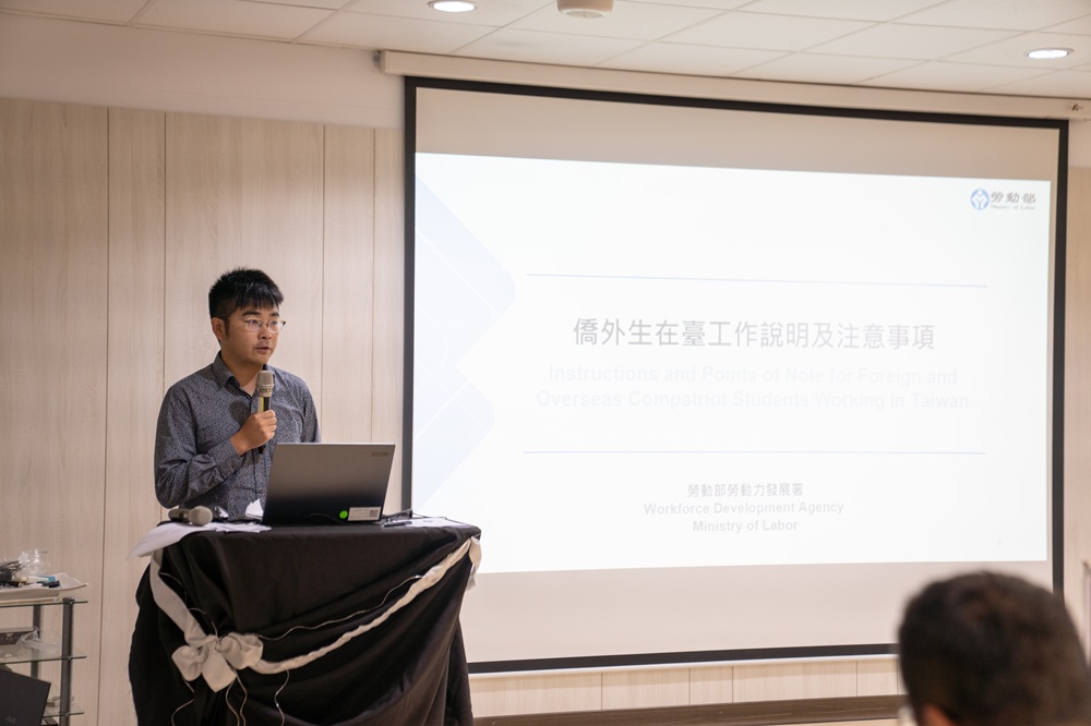 勞動部張哲瑋專員進行僑外生在台工作說明