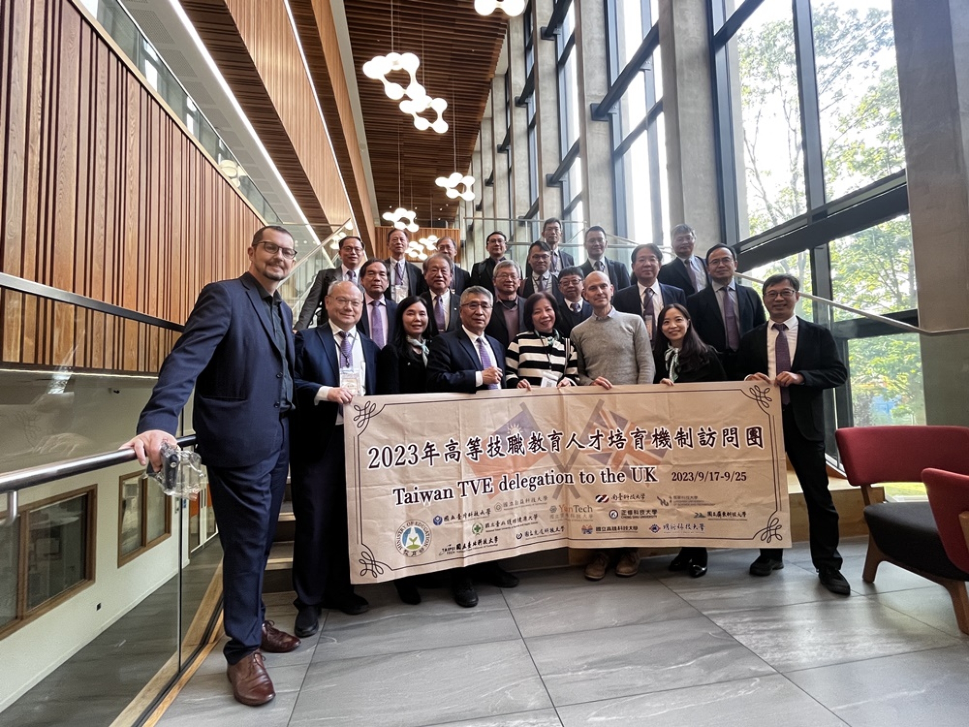 由教育部技術及職業教育司楊玉惠司長率領臺灣12所科技大學組成的「英國高等技職教育人才培育機制訪問團」,在英國順利完成技職教育的交流任務,此行不僅參訪英國技職體系大學,讓臺灣與英國雙邊的高等技職教育機構得以進行深度交流,也首度進入英國教育部拜訪2個直屬官方機構(英國教育部Department for Education, DfE的Skill Strategy and Delivery與Education and Skills Funding Agency),並與英國商貿部(Department for Business and Trade)代表進行交流,爲兩國的技職教育交流達到新的高度。