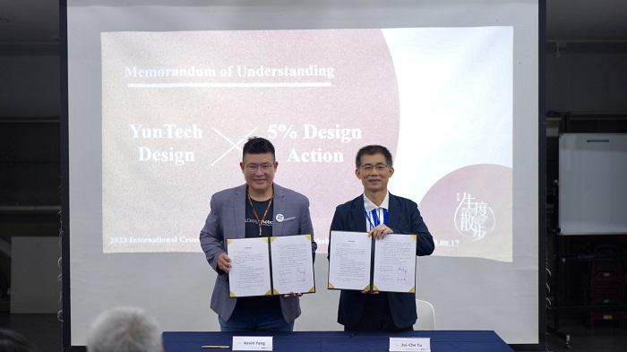 在這個充滿無限可能的時代,雲林科技大學設計學院與5% Design Action攜手前行,共同開創一段令人振奮的合作起點。8月17日在雲林科技大學簽署一份策略性的合作備忘錄(MOU),雙方資源藉由整合提升台灣地方之社會發展、產業推廣、人才培育等能量。