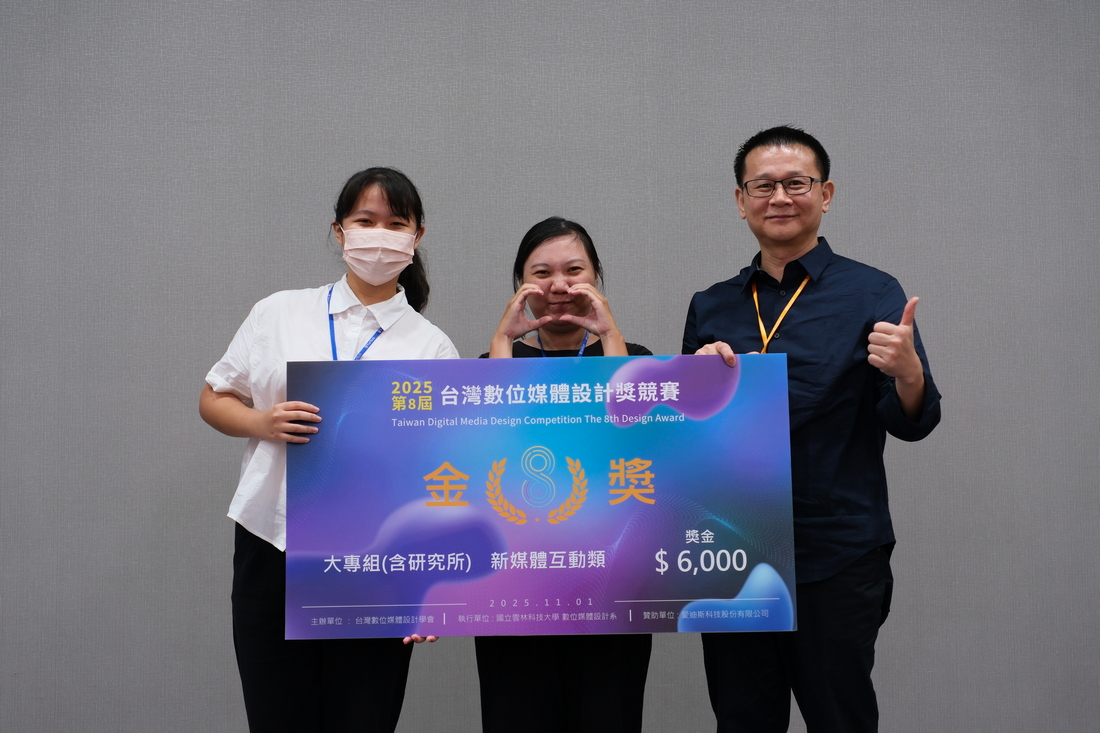 同日下午,「第8屆台灣數位媒體設計獎競賽」亦同步舉行。競賽分為大專組與高中職組兩大類別,大專組包含「數位動畫」與「新媒體互動」兩類,高中職組則包括「數位繪圖」與「角色設計」兩類。經過初賽與決賽的激烈角逐,最終共有14支團隊脫穎而出,榮獲金、銀、銅獎及佳作獎,展現年輕世代在數位創作領域的無限潛能與創意實力。