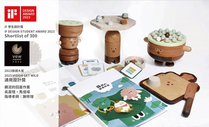 謝修璟老師指導的學生吳晨愷、馬佳璿作品藕泥的回嘉作業,將蓮荷產業的農廢循環設計,與地方特色教育做為產學合作的連結,建立資源循環的概念,讓家鄉土地創新與永續發展,該作品不只榮獲國內最具指標數位、跨域設計學生創意競賽展覽的放視大賞(Vision Get Wild,VGW)肯定,更是受到國際設計界奧斯卡之稱,全球最重要的學生設計獎項之一的iF設計學生獎青睞,在每年提交的作品大約為10,000 件作品中得到入圍前300的殊榮,大放異彩!
