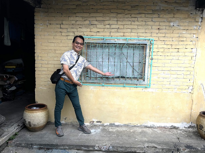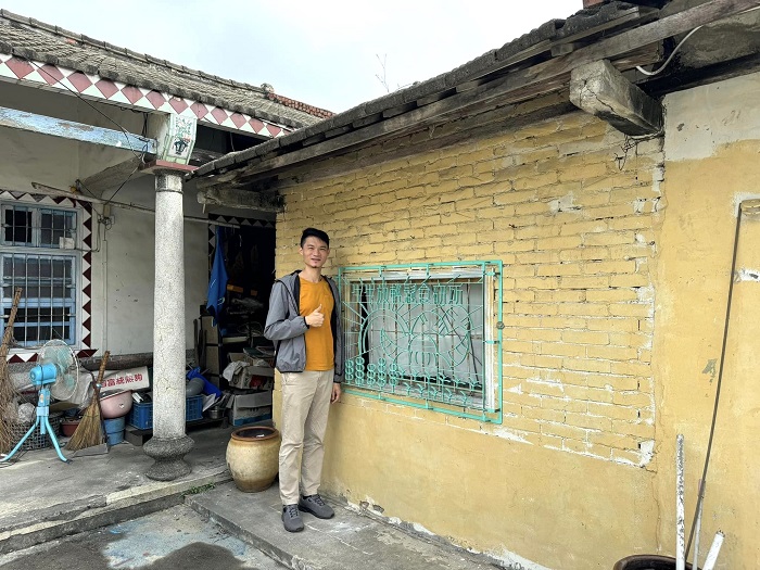 雲科大創設系彭立勛副教授於土庫老農宅改造之『牛牛放輕鬆食研所』前合影