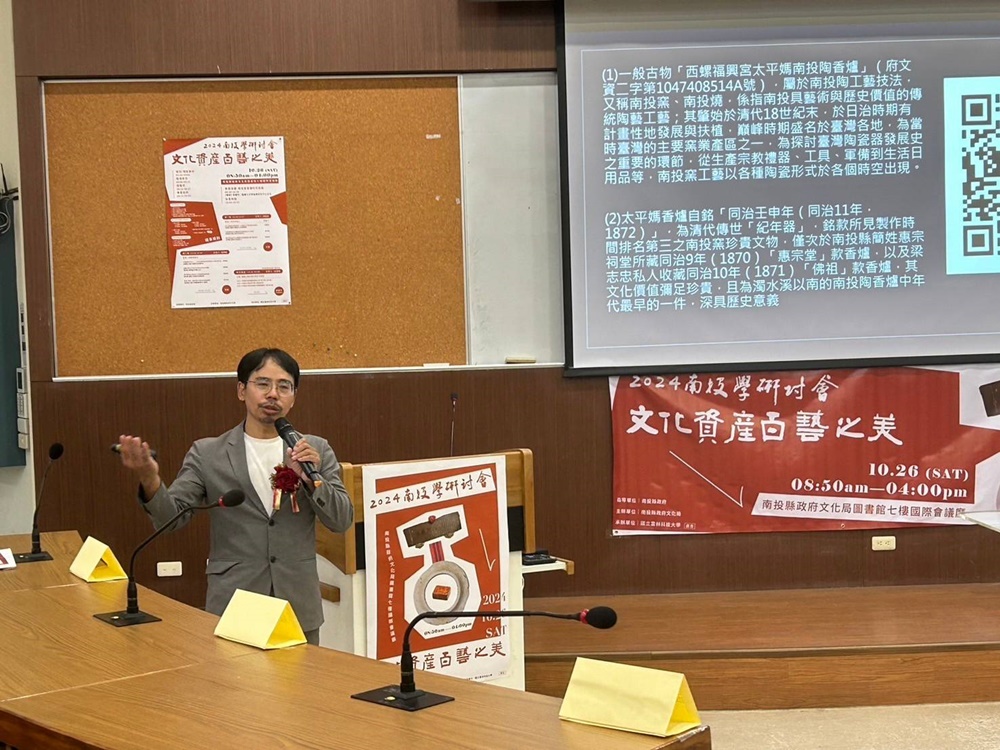 今年的南投學研討會由國立雲林科技大學承辦,研討會主題領域為文化資產,並廣泛涉及其他南投學相關文化議題。專題講座的主講人為國立臺灣藝術大學文物維護中心主任邵慶旺教授,以南投窯香爐保存修護為主題,內容精采且十分吸睛,獲得各界矚目。學術研究一共有七篇專業學術論文於宣讀發表,議題多元跨域並具有重要意義,突顯南投縣政府重視文化與推動各項文化資產行動的成效,現場宣讀論文在會後將出版成正式論文集,以供未來各界參考。