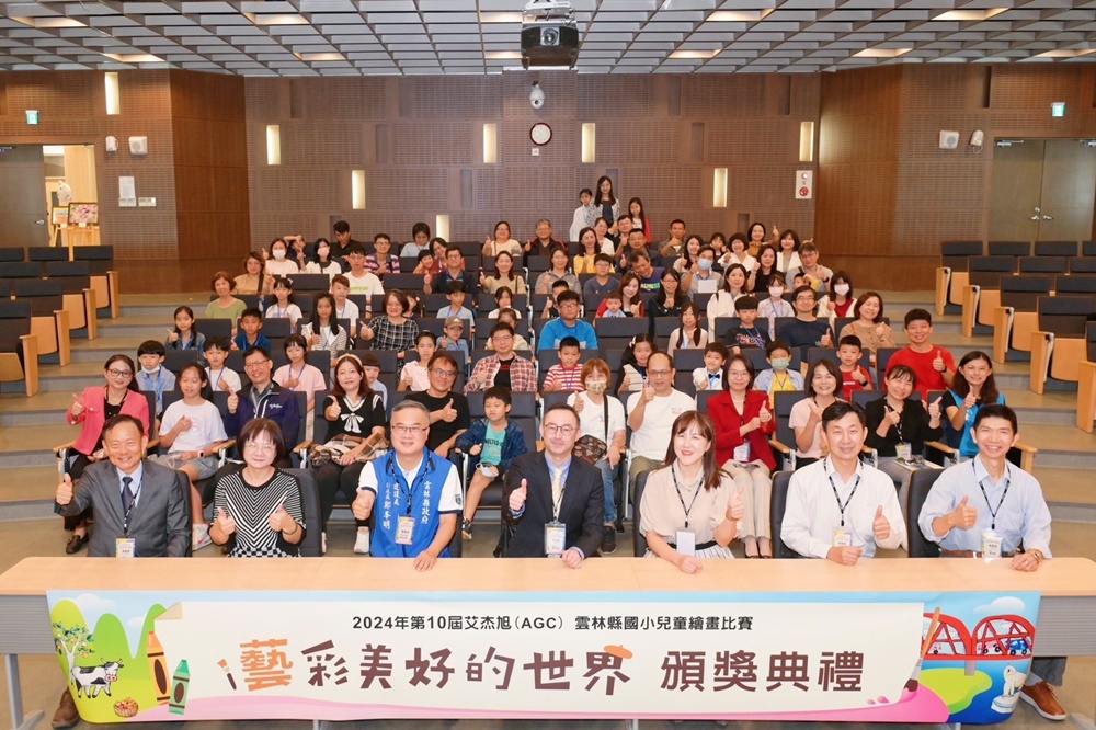 由艾杰旭(AGC)顯示玻璃股份有限公司主辦,國立雲林科技大學承辦的「第十屆雲林縣國小兒童繪畫比賽」113年11月16日在雲科大進行頒獎典禮。此次的比賽主題「『藝』彩美好的世界」讓孩子們透過繪畫分享他們的美好世界!活動共收集了586幅來自雲林全縣國小的作品,孩子們運用繽紛的色彩與天馬行空的想像力,描繪他們眼中的自然、友誼、生活和文化,創造出一個個獨特的藝術作品。低年級組第一名由鎮西國小陳冠霖同學獲得,他的作品《窗外的天空》描繪出自由飛翔的夢想;中年級組第一名是中正國小鄭名妤同學,她的作品《透「視」雲林文化之美》展現了雲林在地特色文化;高年級組第一名由北辰國小蘇鍉縈同學奪得,作品《迎向美好的諾亞號》呼籲環境保護,展現了他對地球未來的關懷。