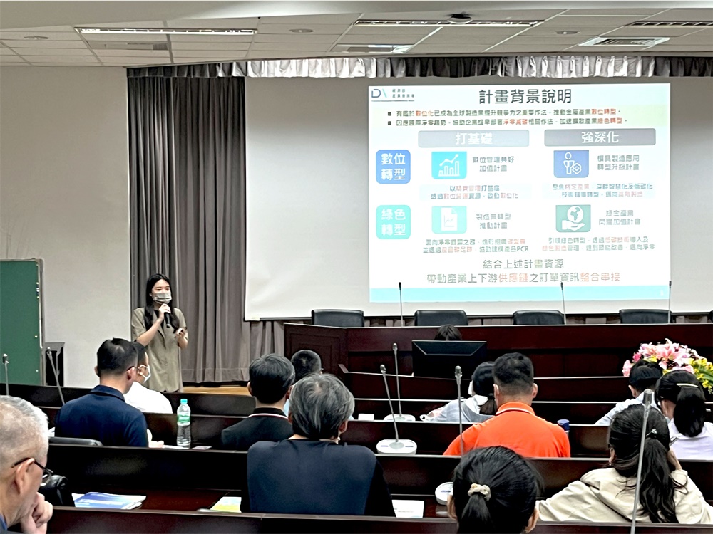 當日邀請國立雲林科技大學張艮輝副校長及工業技術研究院湯寶貞副組長為活動致詞。張艮輝副校長代表感謝與會長官及貴賓,並介紹雲科大於推動淨零排放及產業轉型的付出及成果,身為中部地區重要指標性大學,除輔導轄內企業、工廠導入碳管理機制,打造雲林縣綠色產業供應鏈外,另與雲林縣政府共同成立「雲林淨零轉型整合服務窗口」,透過整合雲科大專業師資及資料庫,打造產官學協力推動產業轉型之合作平台。工業技術研究院湯寶貞副組長說明目前我國推動淨零排放之趨勢,並講述經濟部產業發展署目前針對金屬機電產業所提供之升級轉型資源,透過「精實管理蹲點服務」、「數位營運管理輔導」、「碳盤查加值應用」、「低碳技術應用」、「綠色製造管理輔導」、「模具應用升級輔導」等計畫,協助打造產業轉型基礎,提升產業競爭力。