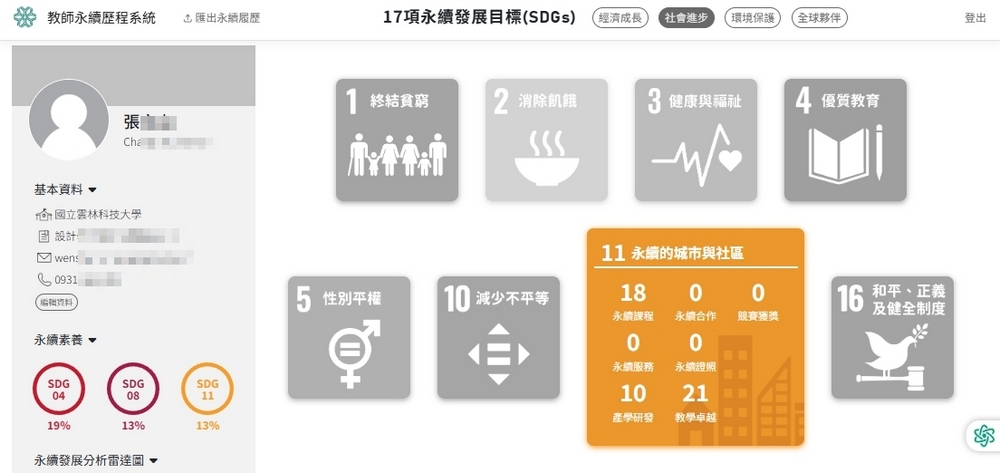 雲科大「永續履歷認證系統」截圖畫面,紀錄師生永續行動成果
