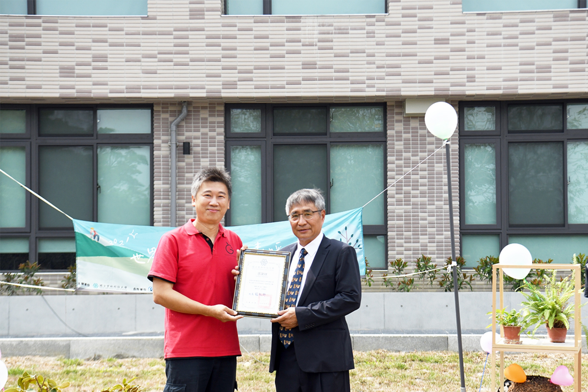 校長楊能舒頒發感謝狀給予社會企業綠色冀泉陳宇華執行長