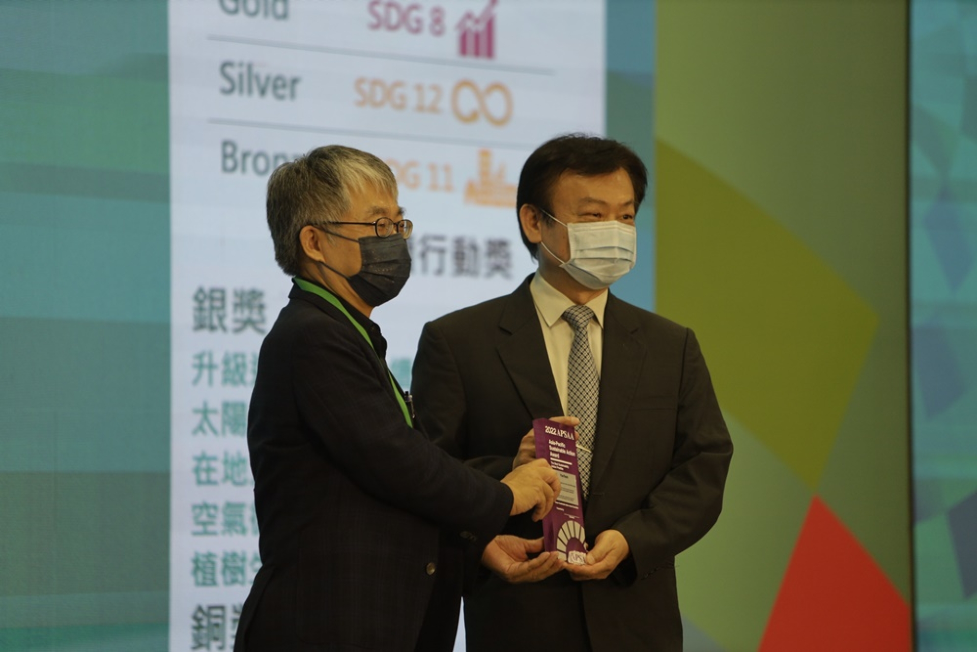 雲科大在2022 亞太暨台灣永續行動獎表現亮眼,於「APSAA亞太行動獎」獲得一金一銀一銅:雪州新村台馬永續創生(金)、臺灣新興糧食永續循環(銀)台日部落共融文化永續(銅);「TSAA臺灣永續行動獎」共獲得六銀一銅:空氣微型監測永續環境(銀)、太陽能發電全方位偵測(銀)、在地人本實踐永續創新(銀)、升級道路安全永續運輸(銀)、植樹生態圈永續價值鏈(銀)、智慧辨識升級永續轉型(銅); 以及本校桂林淺山USR團隊的吳享育,其回鄉創業與傳承精神獲得「傑出永續青年獎」肯定,全台僅有4位獲獎。