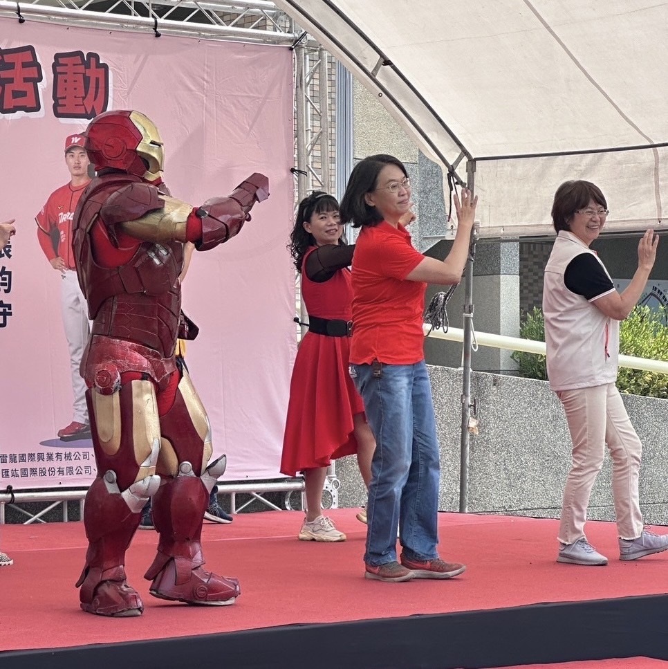 李美惠理事長與郭昭吟產學長與鋼鐵人共舞表演