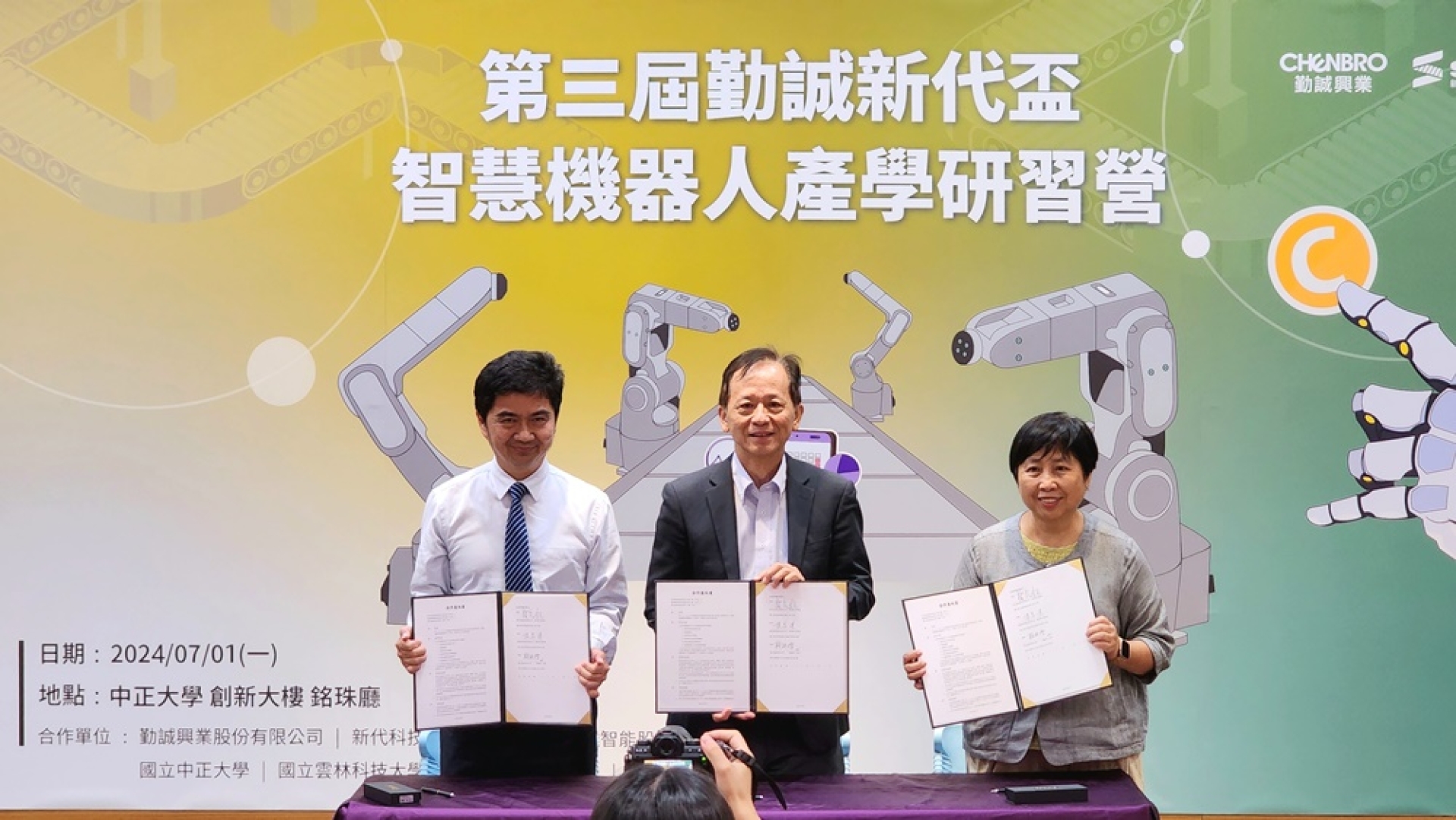 國立雲林科技大學與雲嘉在地四所國立大學合作,和輝達(NVIDIA)優質供應鏈上市公司勤誠興業與控制器大廠新代科技,於今(1)日假中正大學舉辦「智慧機器人產學研習營」開幕活動,展開為期六週的暑期研習課程與專題實作競賽,並且簽署合作意向書。