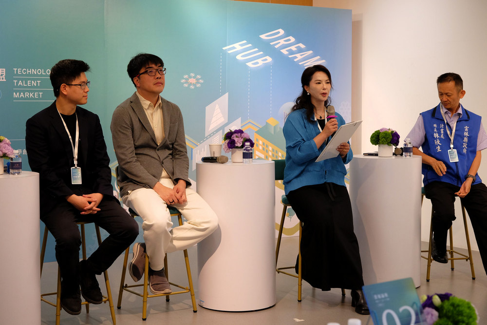 與談貴賓交流時刻 (圖片由左至右為胡耀傑執行長、吳德威執行長、張岑瑤產學長、林欣生科長)