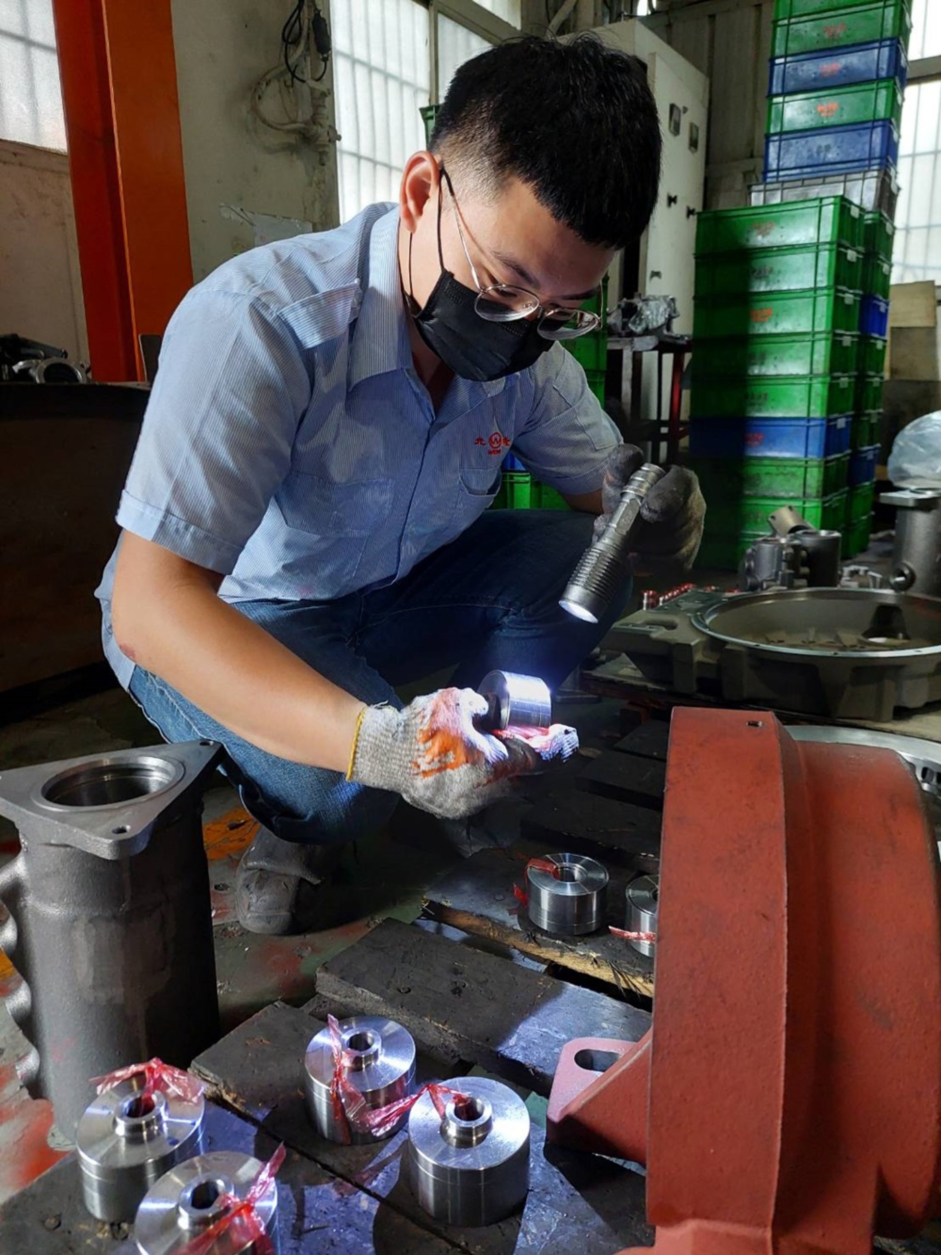 圖一_鑄造專班學生於光隆股份有限公司現場進行產品檢驗工作