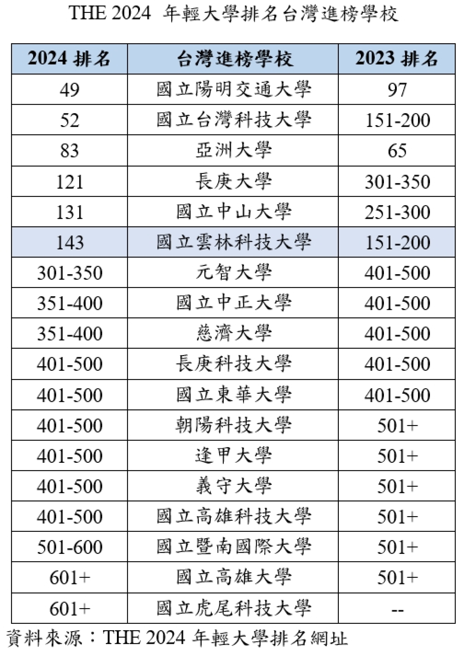 THE 2024年輕大學排名網址:https://www.timeshighereducation.com/world-university-rankings/2024/young-university-rankings