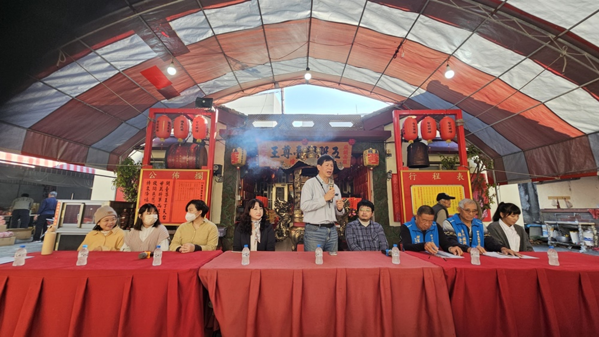 計畫主持人黃世輝教授表示,智能地域中心自民國109年啟動五股開臺尊王研究場域,迄今已星霜五載,雖說累積些許研究與設計成果,但雲科大師生團隊精益求精,持續在這場域耕耘,加深加廣既有成果,持續開拓新的議題。此次在長房股紅壇策畫年度成果展,向鄉親報告雲科大師生團隊一年來的努力,這些成果是真正落實到場域,與地方夥伴共創共榮,達到社會實踐之效益。