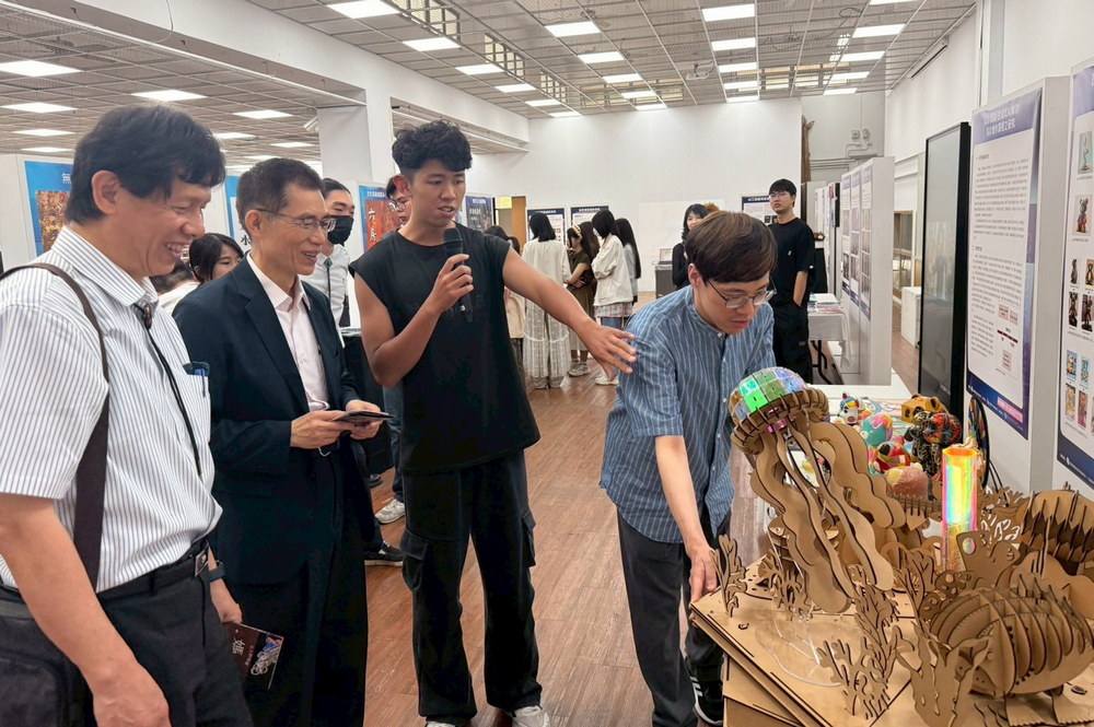 成果聯展同時結合雲科大設計學院及人文科學學院的工業設計系、文化資產維護系以及跨域整合設計學士學位學程,共3個班級的學生參與。並以設計學院之人工智慧與設計應用課程以及人文科學學院的無形文化資產導論,進行素養導向教學與課程翻轉。引導學生在AI智能工具使用上的識讀能力與數位素養的培育,並利用課程作業的規劃執行,熟悉各式工具的整合應用,包括AI工具輔助產品設計的圖像生成、AI生成多媒體影音與繪本的製作等。同時也透過課程規劃,鼓勵學生走出校園,透過各地民俗文化的親身體驗與觀察紀錄,提升學生們的社會參與能力,理解無形文化資產的重要性,最後透過AI工具的輔助,提出主題式的成果內容。而透過兩門課程的教學創新翻轉的導入與執行,進一步深化新課綱下的學生有更多的自主學習能力,加強AI工具在學習上的輔助應用。透過課程教學規劃的實踐應用,也呼應了雲科大以務實致用為導向的培育人才方針。而身為計畫主持人的設計學院院長杜瑞澤表示,雲科大設計學院在面對AI浪潮趨勢下,不管是各個專業課程的銜接導入以及教師教學增能成長,都已經做好因應規劃,以期讓學生能夠透過以數位素養為基礎的專業技能培育,掌握AI工具帶來的各種利與弊,進一步的捍衛自己未來在職場的多元價值。