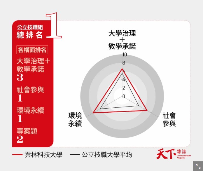 正是這樣重視基礎建設、積極導入科技的創新做法,讓雲科大成為今年「天下USR大學公民獎」調查最強黑馬,在競爭激烈的公立技職組中殺出重圍。
