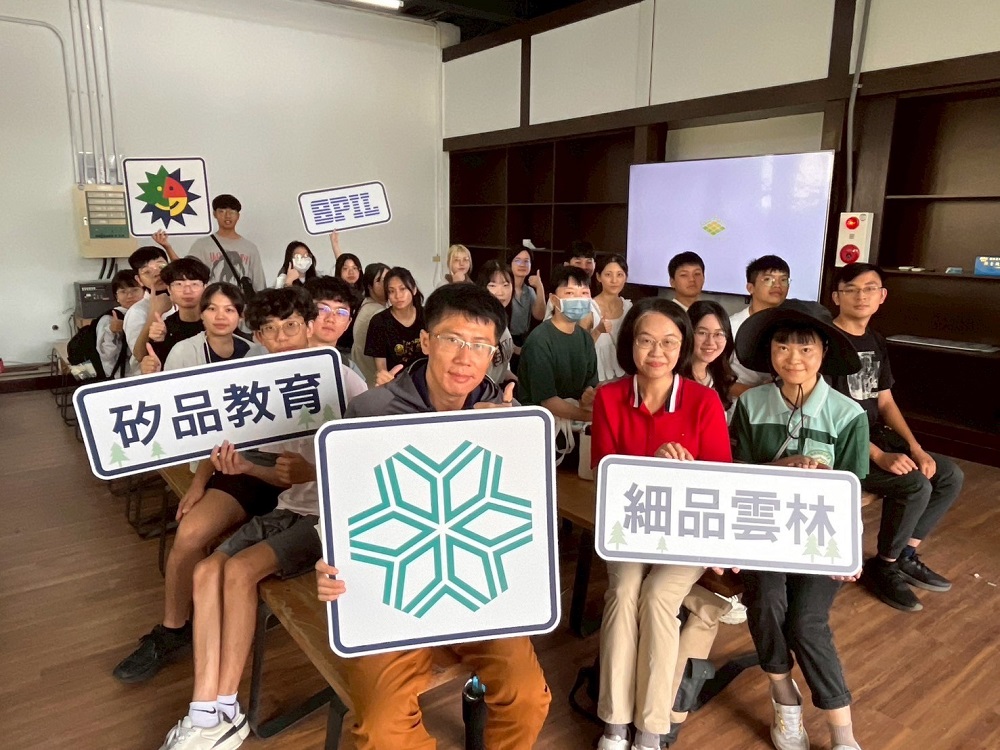 雲科大學生手持「矽品教育」、「細品雲林」標語與 LOGO 進行合影,展現參與環境教育行動的熱情與團隊精神。