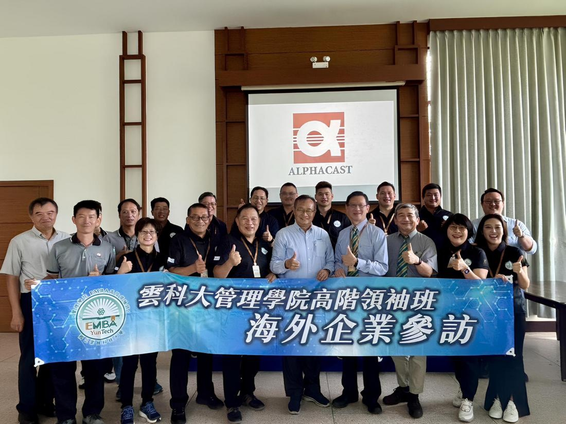 雲科大第九屆 EMBA 學生一行 16 人,在管理學院黃邦寧院長和林尚平主任帶領下,於 10 月 20 日至 10 月 24 日前往泰國進行海外企業參訪。深入走訪6家具代表性的當地企業,分別為亞法金屬(ALPHACAST CO., LTD)、中泰紙管(SINOPAC CO., LTD)、萬豐鋼鐵(MUNKONG STEEL CO., LTD)、一原金屬(EAYUAN METAL INDUSTRIAL CO., LTD)、隆興工業(GOLDEN TIME ENTERPRISE CO., LTD)及 3 季食品( 3 SEASONS FRUITINDUSTRY CO., LTD),展開為期數日的交流與實地觀摩。