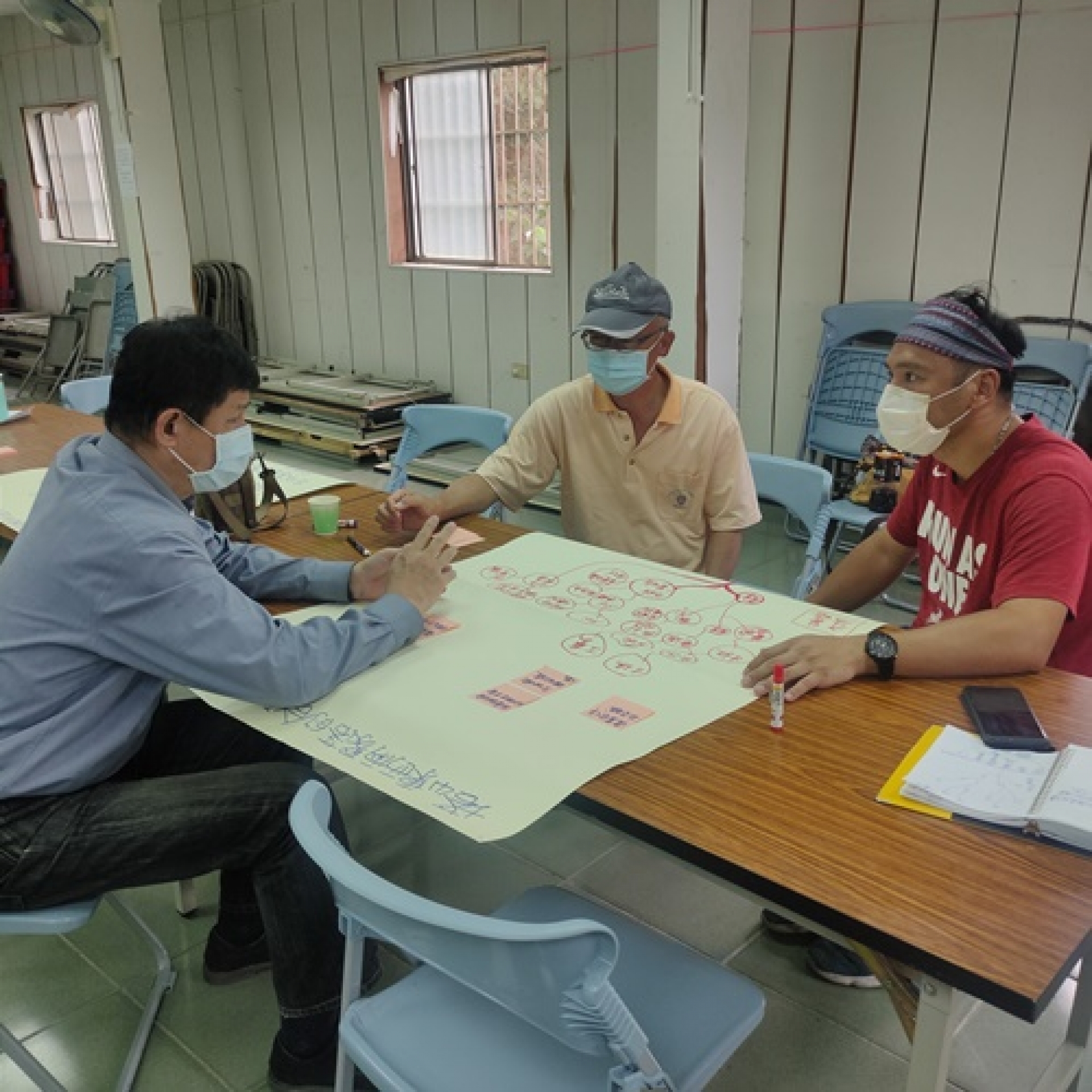 居民共同發表討論的想法(左梁崇效部落主席、右為來吉國小前主任鄭義信)