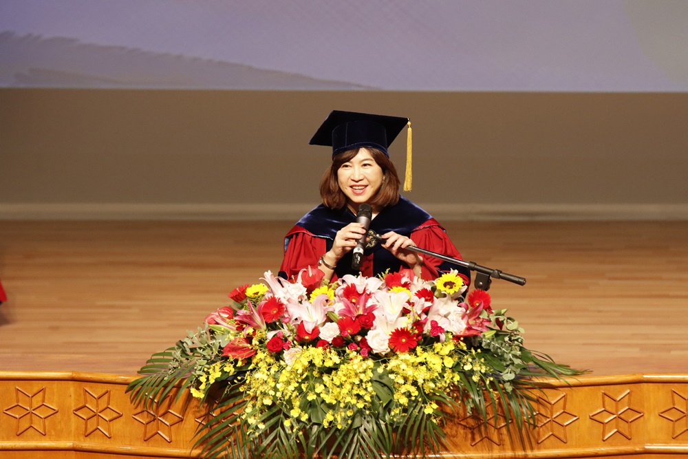 廖紫岑董事長也謙虛表示,此次獲頒此名譽博士學位感到十分榮幸,感謝大家對她的肯定和鼓勵,也感謝雲科大對自己的企業理念的認同,同時她覺得自己應該要善盡企業社會責任,持續關心環境生態,並且投入更多的公益。未來她會秉持一如既往的信念,持續回饋社會,和雲科大一起為產業發展和社會責任貢獻一己之力。