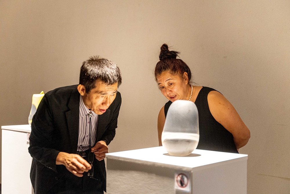 王鈴蓁老師,來自雲林的藝術家,曾就讀於銘傳管理學院商業設計,並在澳洲國家大學獲得玻璃藝術碩士學位,隨後更攻讀南澳大學的玻璃藝術博士。2006年王老師在香港浸會大學建立了玻璃工作室,教授玻璃藝術,現為該校創意學院視覺藝術院副教授, 至今持續為藝術教育貢獻心力。此次展覽以玻璃為媒材,透過抽象的表現方式將生活中的點點滴滴轉化為藝術作品,勾勒出一幅幅富有詩意的畫面。展覽現場將是一個讓人心靈沉澱、放慢腳步的空間,讓觀眾在藝術中找到片刻的寧靜。值得一提的是,本次展覽得到香港藝術發展局的資助,支持了展覽的國際運費及機票,使得更多人有機會欣賞到王鈴蓁老師的玻璃藝術。